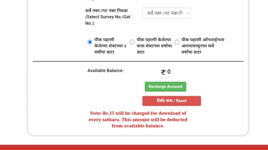 • हा सातबारा जर तुम्हाला डिजिटल स्वाक्षरीसह हवा असेल तर १५ रुपये इतके नाममात्र शुल्क ऑनलाईन पद्धतीने भरणे गरजेचे आहे.